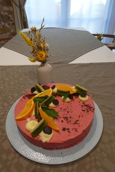 Les résidents nés en mars étaient à l'honneur ce midi dans la salle restaurant. Pour l'occasion, l'équipe restauration a proposé un bavarois aux fruits rouges accompagné d'un verre de champagne local.