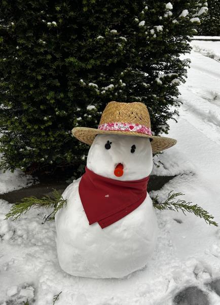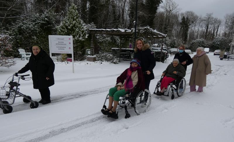 Les résidents ont profité des 7 cm de flocons tombés pour se promener en étant accompagnés, sous le regard amusé d'Olaff notre bonhomme de neige, qui lui a pris différents looks au cours de l'après-midi.