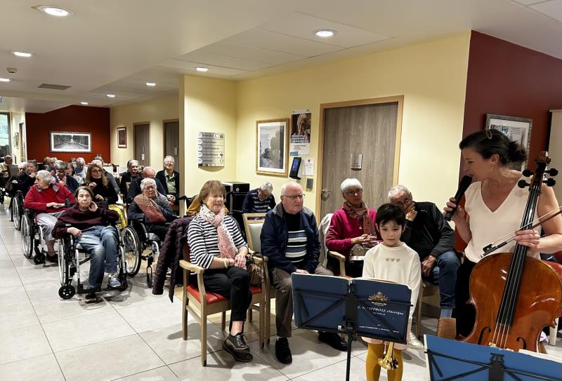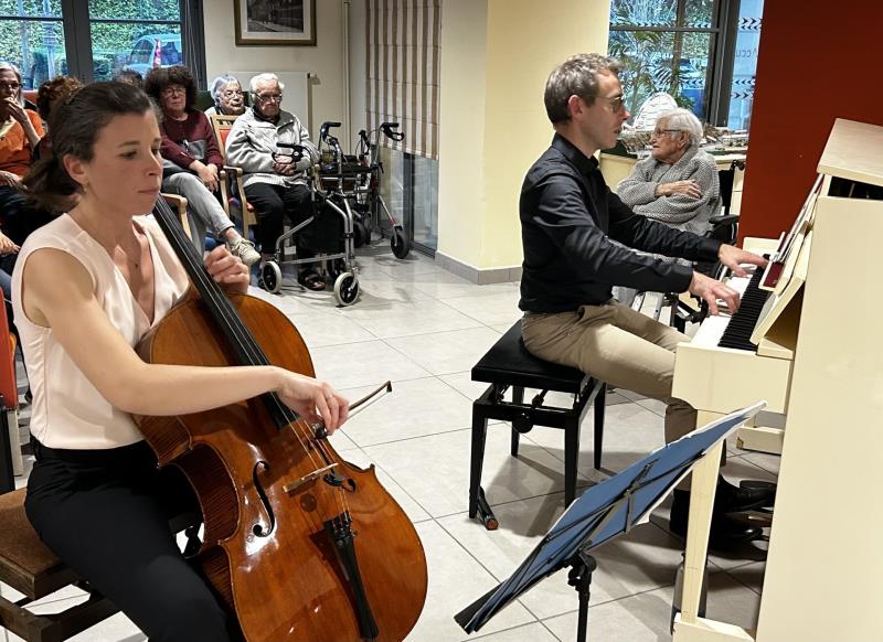 Le piano et un violoncelle ont résonné dans tout l'accueil pour le plus grand plaisir des 92 résidents et des familles présents. Et deux jeunes talents issus de la dernière génération de la famille étaient aussi de la partie.