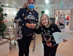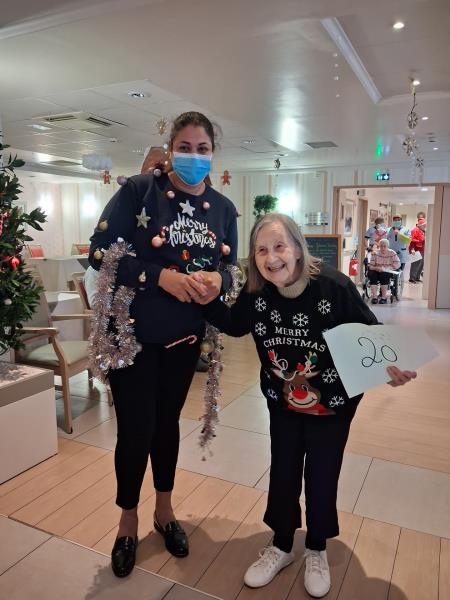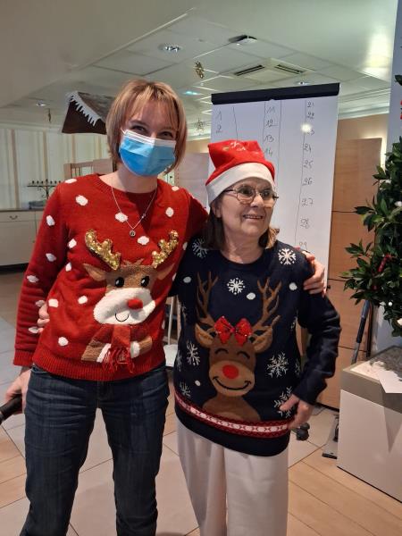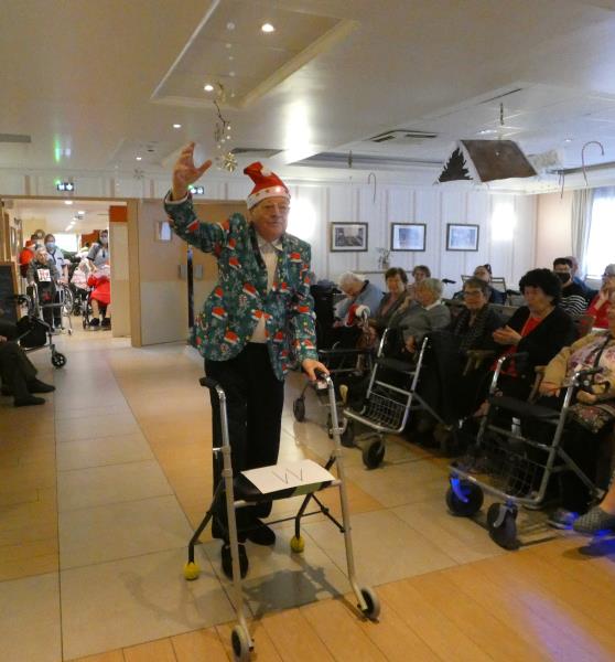 Beaucoup de styles différents : lumineux, animalier, Père Noël… tous plus beaux les uns que les autres. Il a tout de même fallu en élire un, c'est Wilfried, aide-soignant du 1ᵉʳ étage, qui a remporté cette année le concours de la tenue de Noël avec son joli pull.