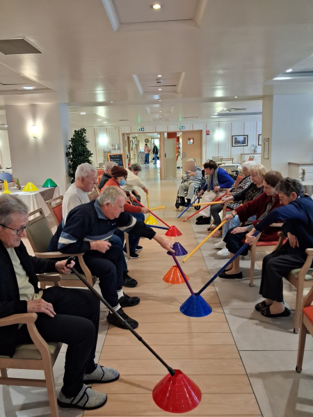 L'animatrice a proposé une initiation à l’escrime. Coordination, concentration et rapidité, au-delà du sport, c’est un moment de plaisir et de convivialité.
