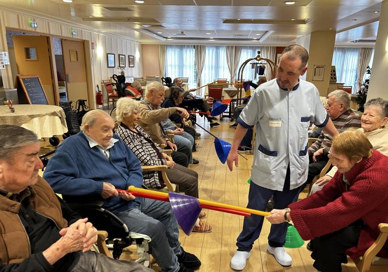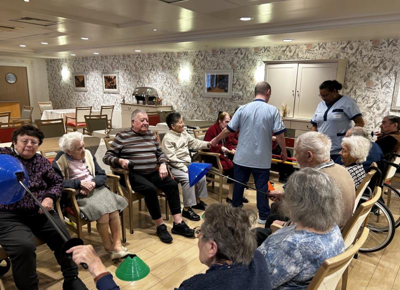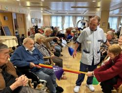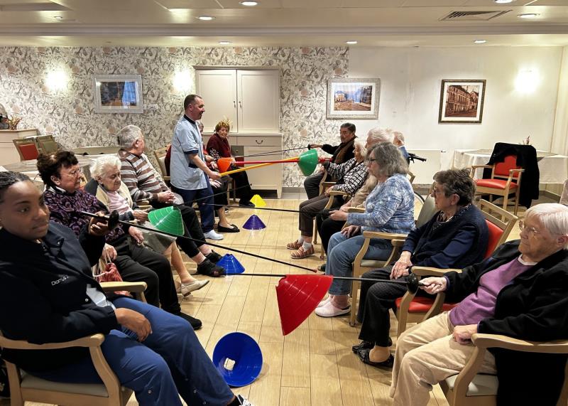 Château de la Source > Actualités > Jeux sportifs Jeux sportifs Publiée le 28/03/2026 Comme chaque samedi, les résidents participent aux jeux sportifs. Au programme aujourd'hui: escrime, avec des exercices de coordination, d'agilité et de rapidité