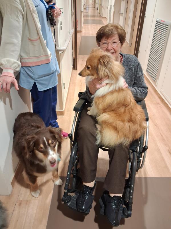 Château de la Source > Actualités > Médiation animale Médiation animale Publiée le 26/01/2026 hier, Véronique et ses chiens bénévoles sont venus pour des moments plein de tendresse.