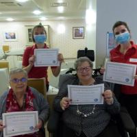 Publiée le 18/03/2022A l'occasion de la semaine de la courtoisie au volant, les résidents, les collaborateurs et les familles ont eu la possibilité de repasser l'examen du code de la route en salle restaurant. 20 questions, une note minimale de 15/20 pour obtenir le précieux diplôme. Nous sommes heureux de vous annoncer que les deux animatrices (ac [...] Lire la suite
