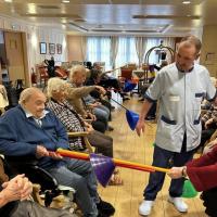 Publiée le 28/03/2026Comme chaque samedi, les résidents participent aux jeux sportifs. Au programme aujourd'hui: escrime, avec des exercices de coordination, d'agilité et de rapidité Lire la suite