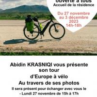 Publiée le 27/11/2023Après avoir suivi au printemps le tour d'Europe d'Abidin à vélo, c'est avec beaucoup de plaisir que les résidents découvrent l'exposition photos de ce périple. Une exposition ouverte à tous de 14h à 18h, visible jusqu'au dimanche 3 décembre dans le hall de la ré [...] Lire la suite