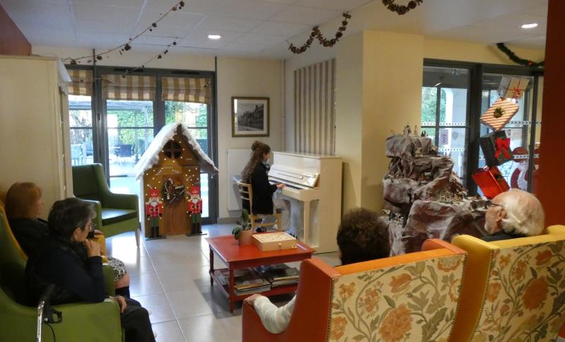 Constance, psychomotricienne de la résidence aime partager son amour du piano en jouant quelques morceaux à qui veut l'entendre. Si vous aussi vous souhaitez l'écouter, installez-vous confortablement dans l'un des fauteuils des salons d'accueil, les mardis et mercredis midi, vous aurez toutes les chances d'entendre ses belles mélodies. Les pianistes de tous niveaux sont les bienvenus , faites vous connaitre !
