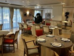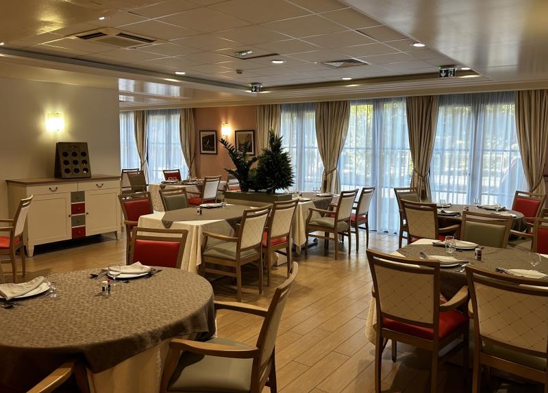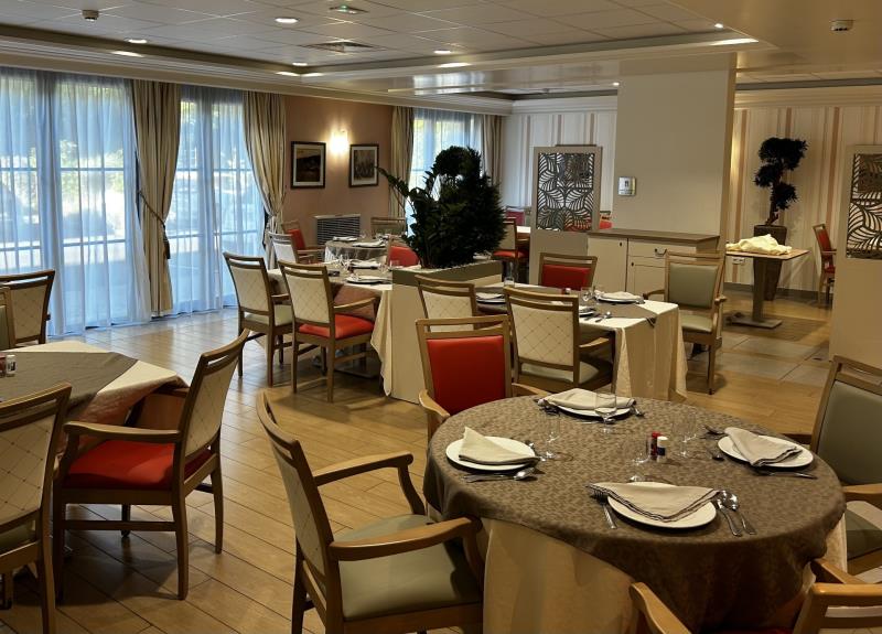 Nous sommes très heureux de vous dévoiler notre nouvelle salle de restaurant. Un nouveau mobilier très apprécié des résidents, des familles et des collaborateurs. Celui-ci a également été choisi en vu d'une amélioration des contraintes posturales des serveurs ainsi que des équipes de soins au moment de l'aide aux repas.
