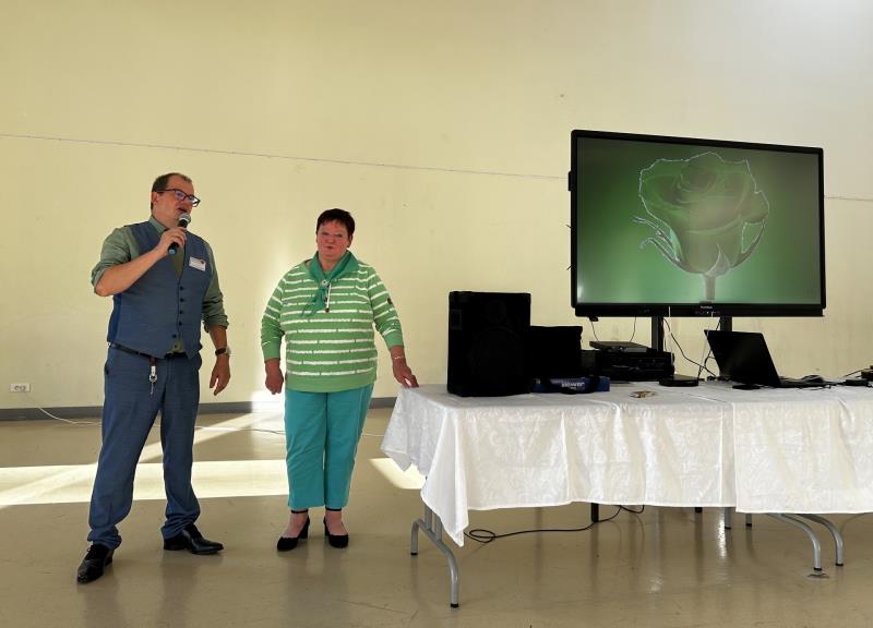 Cet après midi les résidents ont emballé les roses vertes, symbole de l'association Alzheimer Sud Aisne, qui sont mis à la vente à partir de 2€ au profit de l'association.